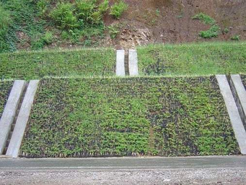 3D Polymat mesh is a Three-dimensional structure manufactured.From three polypropylene meshes that have been extruded and sub-sequently orientated. The mat has a tensile strength of 35 kN/m and a low unit weight which makes it ideally suited for installation on steep slopes.